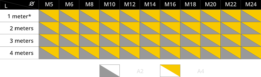 Valbruna offers a wide range of stainless steel threaded rods type A2 and A4, with metric threading according to ISO 3506 – 1, coarse thread, Form A – DIN 976, suitable for use in environments where corrosion resistance is a decisive factor for the end-use of the product.